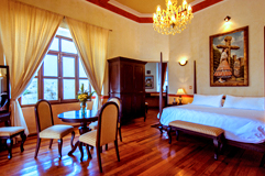 Sin embargo, lo interesante de nuestro hotel no radica únicamente en la decoración de sus habitaciones, sino en las áreas comunes; hermosos jardines rodeados de fuentes y todo el misticismo de las construcciones antiguas, o pasillos históricos con elementos del siglo XIX como la antigua escalera de tiempos del porfiriato.